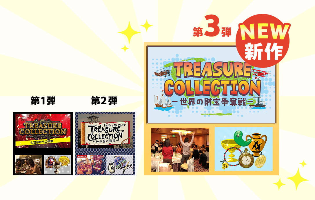 従来の「トレジャーコレクション1・2」とは、世界観だけでなく「謎」や「ミッションの内容」も全て一新!過去にすでに体験いただいたお客様にも、新たな驚きと盛り上がりをご提供します。